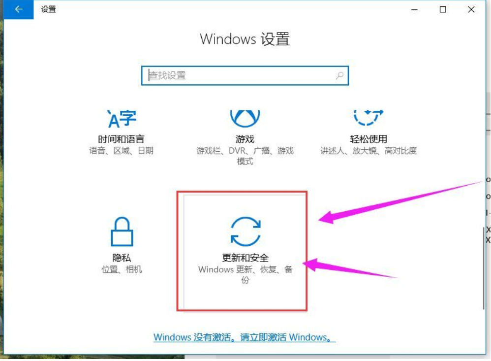 2.進(jìn)入新頁面以后點(diǎn)擊“更新和安全”;