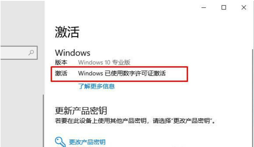 3、激活一欄顯示 windows已經使用數(shù)字許可證激活,代表你的計算機已經永久激活,就算下次重裝,不需要再使激活工具也會自動激活了。