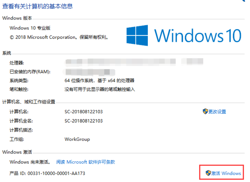 2.在打開的界面中,點(diǎn)擊“激活Windows”;