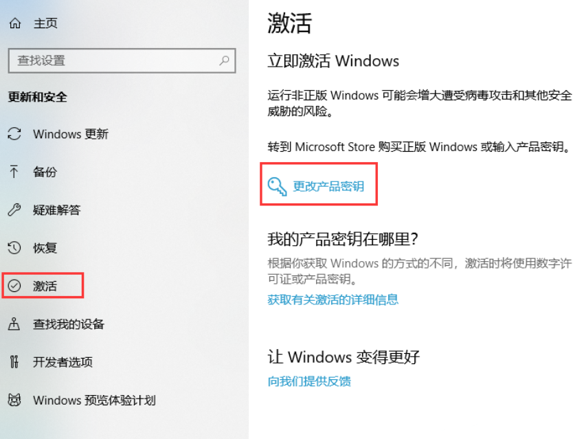 3.在設(shè)置頁面里,點(diǎn)擊打開“更改產(chǎn)品密鑰”;