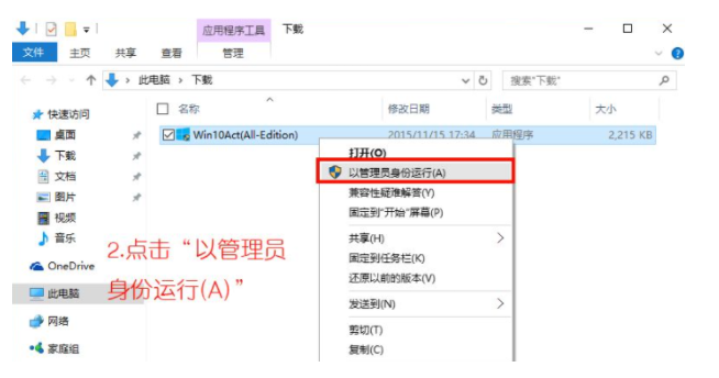 2、右擊以管理員身份運(yùn)行解壓完后的Win10Act(all-edition)激活工具。
