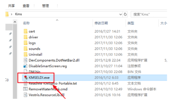 3、右擊kmseldi.exe選擇“以管理員身份運(yùn)行”。