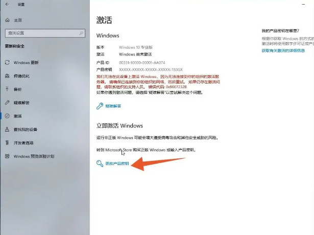 2、在激活下點(diǎn)擊更改產(chǎn)品密鑰,輸入密鑰進(jìn)行激活。