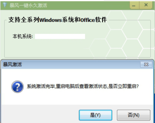 步驟五:當屏幕彈出系統(tǒng)激活完成的提示時,說明Win10專業(yè)版已激活。點擊是按鈕以重新啟動電腦。