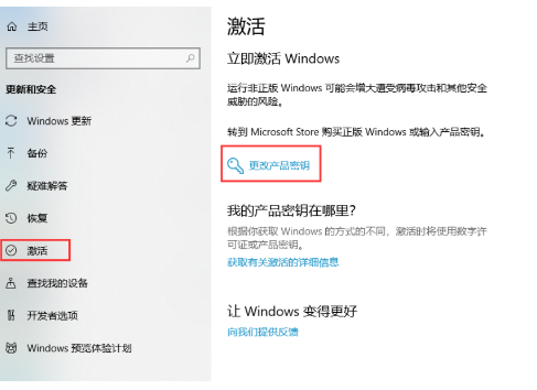 步驟三:在設(shè)置界面里,我們單擊打開“更改產(chǎn)品密鑰”。
