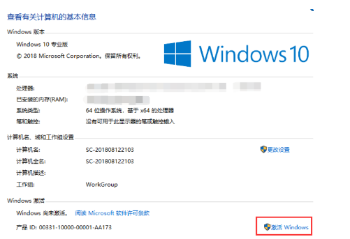 步驟二:在打開的頁面中,單擊“激活Windows”。