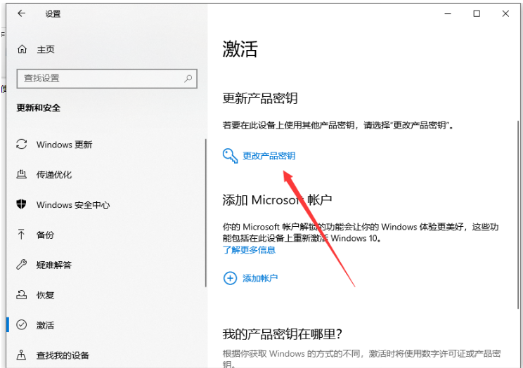 步驟三:接著再點(diǎn)擊“更改產(chǎn)品密鑰”。