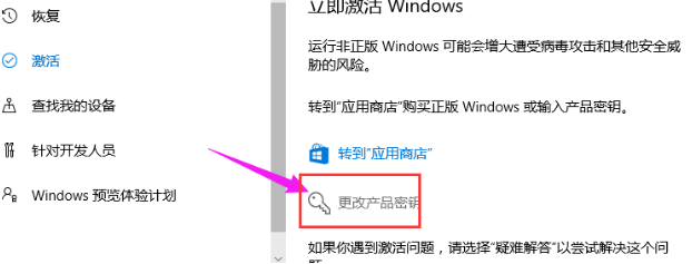 4、選擇右側(cè)的更改產(chǎn)品密鑰。