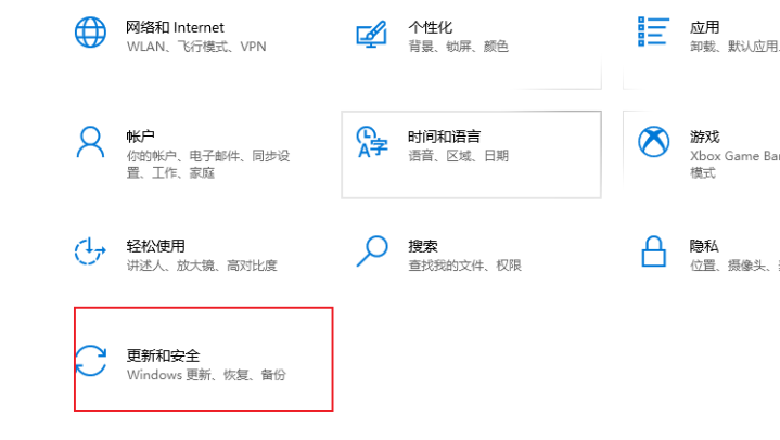 2、進(jìn)入到win10系統(tǒng)的設(shè)置界面之后,點(diǎn)擊“更新和安全”。