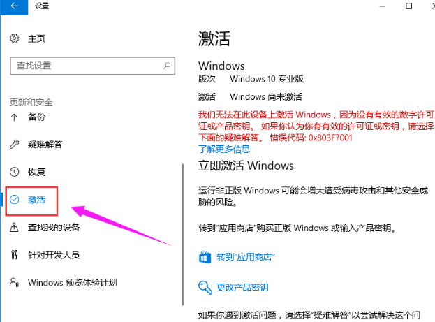 3、點(diǎn)擊左邊的激活這個(gè)選項(xiàng),切換到激活系統(tǒng)的界面。