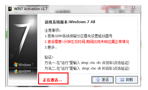 3、等待自動開始激活win7系統(tǒng)。