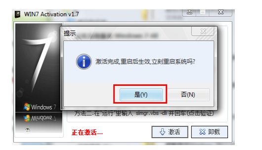 4、激活成功后點(diǎn)擊是進(jìn)行重啟。