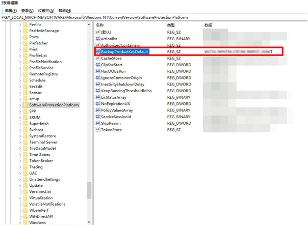 3、在右側(cè)欄目中的【BackupProductKeyDefaul】后的數(shù)據(jù)就是office產(chǎn)品密鑰啦。