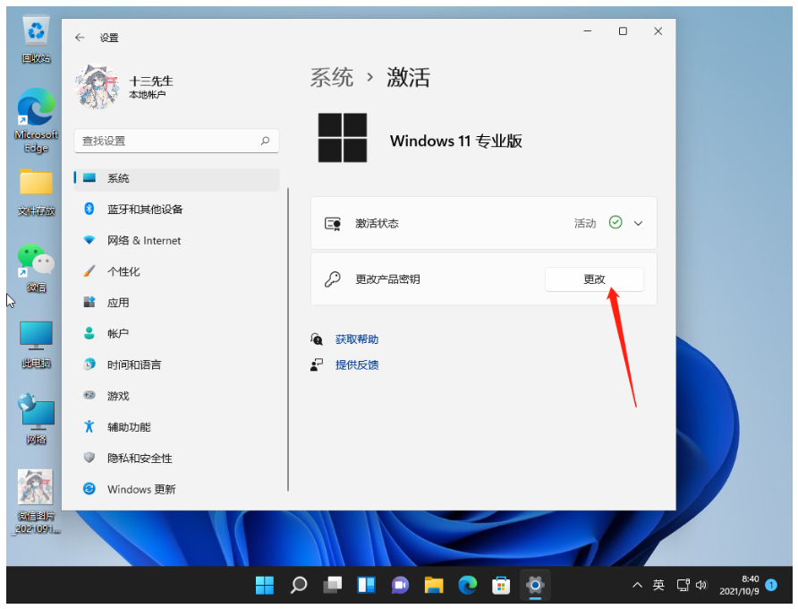 3、接著點擊更改產(chǎn)品密鑰
