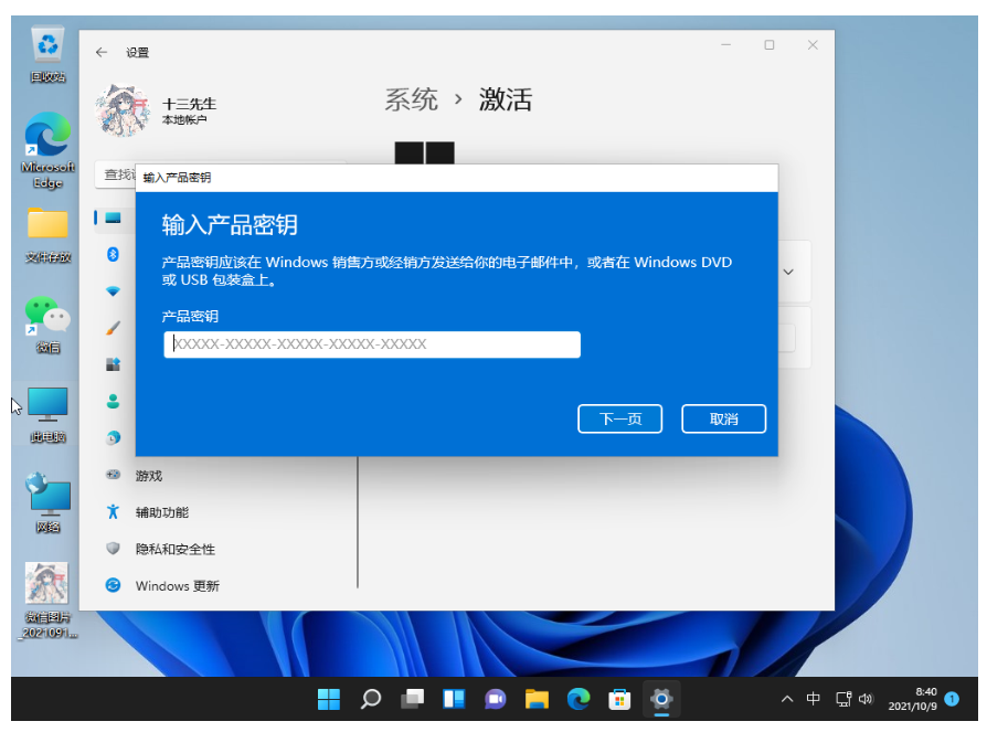 4、隨后輸入激活密鑰:8G7XN-V7YWC-W8RPC-V73KB-YWRDB,點擊下一步。