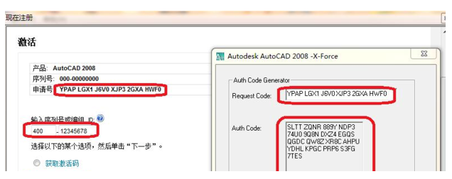 工具/原料 系統(tǒng)版本:Windows 10 品牌類型:HUAWEI MateBook X 軟件版本:AutoCAD2008 方法/步驟: 一、Autocad2008激活碼: 二、AutoCAD2008激活教程: 1、首先打開CAD2008的軟件,點(diǎn)擊下一步。 2、隨后分別填入序列號(hào)、激活碼。 3、接著打開CAD2008注冊機(jī),可以看到序列400-12345678,將其復(fù)制下來復(fù)制。 4、粘貼序列號(hào),再復(fù)制申請?zhí)?。CAD 2008-x-Force 對話里面的request code:里面,點(diǎn)擊calculate出來的數(shù)字,并復(fù)制激活碼。 6、將上一步復(fù)制的申請?zhí)柡图せ畲a在粘貼在如下相應(yīng)的位置,然后點(diǎn)擊下一點(diǎn)。 7、最后出現(xiàn)“激活確認(rèn),感謝您注冊并激活產(chǎn)品”則說明注冊成功,單擊完成即可。 總結(jié):以上就是cad2008激活碼的使用教程,希望上述方法能夠幫您成功激活cad2008。