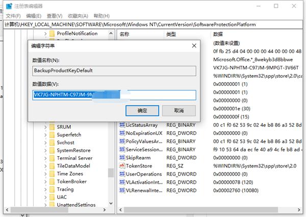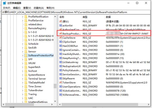 4、最后雙擊打開BackupProductKeyDefault注冊表鍵值,在編輯窗口中就可以看到系統(tǒng)的激活密鑰了。