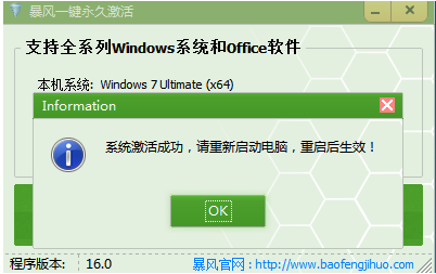軟件版本:暴風激活工具16.0