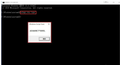 4、最后輸入下列命令:slmgr /ato,按回車(chē)之后將彈出窗口提醒:“取得成功的激話(huà)了商品”。