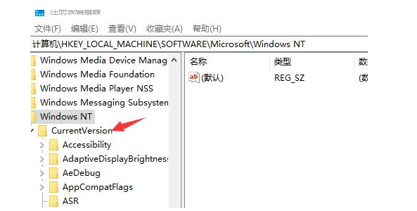 3、再依次展開(kāi)Microsoft、Windows NT、CurrentVersion。
