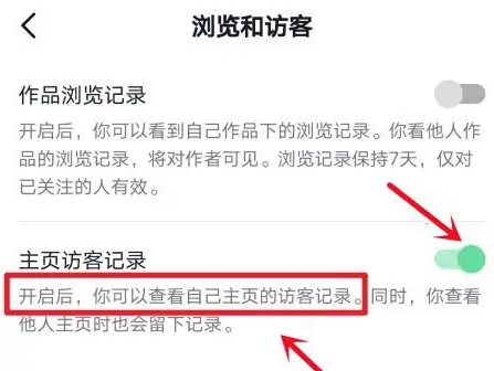 3、在瀏覽和訪客頁(yè)面,開啟【主頁(yè)訪客記錄】按鈕,即可查看訪客記錄。