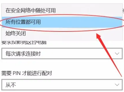 4、點擊第一個選項右邊的下拉箭頭,接著點擊彈出窗口中的所有位置都可用選項。