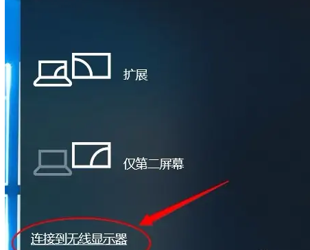 2、點擊箭頭所指的連接到無線顯示器選項。