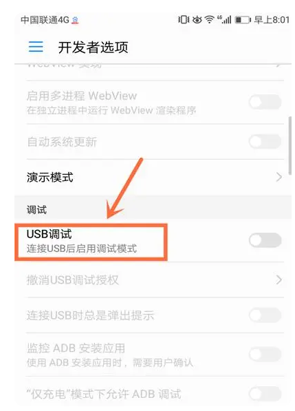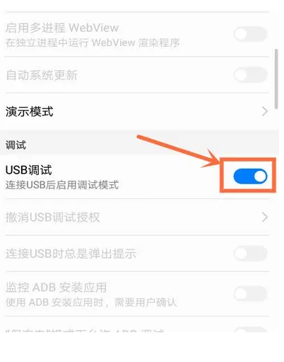 3.點(diǎn)擊開啟USB調(diào)試開關(guān)即可打開。
