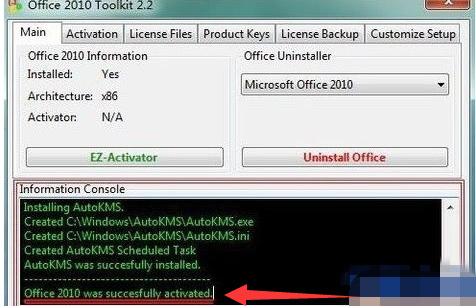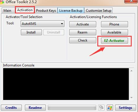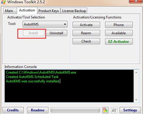 4、選擇“Activation”選項(xiàng),先點(diǎn)左側(cè)的“install”,安裝AutoKMS。顯示succesfully installed后點(diǎn)擊右側(cè)下面的“EZ-Activator”按鈕。