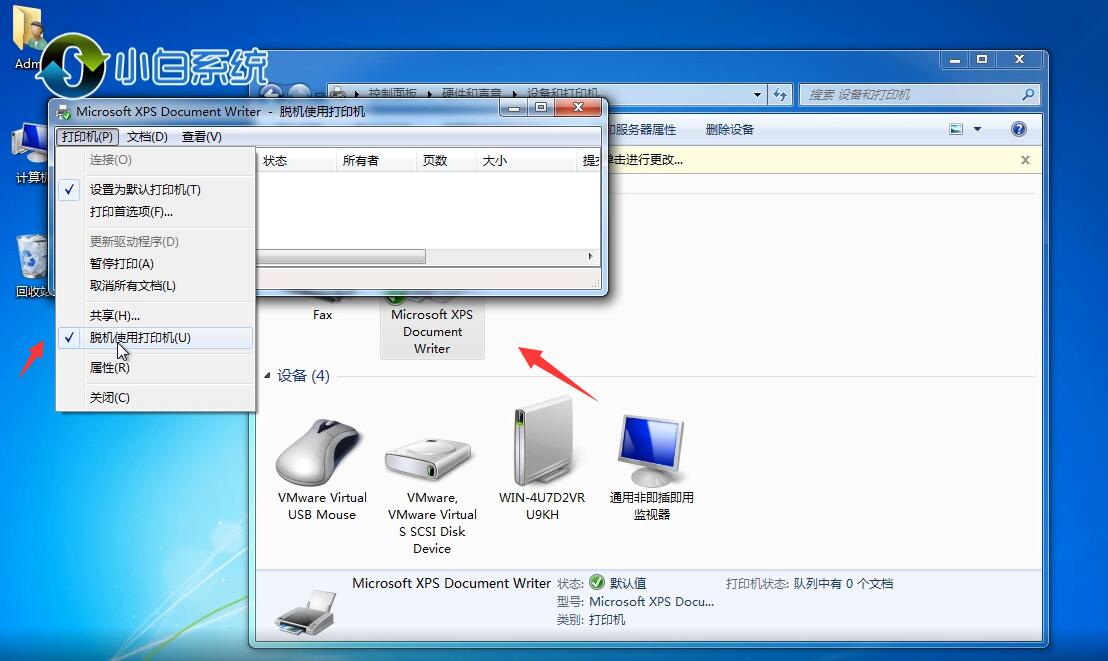 2、打開(kāi)設(shè)備和打印機(jī),找到打印機(jī),取消脫機(jī)執(zhí)行打印機(jī)即可。