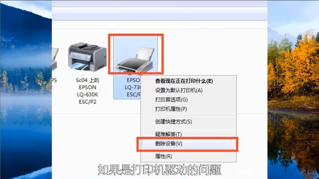 1、鼠標(biāo)右鍵點(diǎn)擊脫機(jī)的打印機(jī),選擇刪除設(shè)備;
