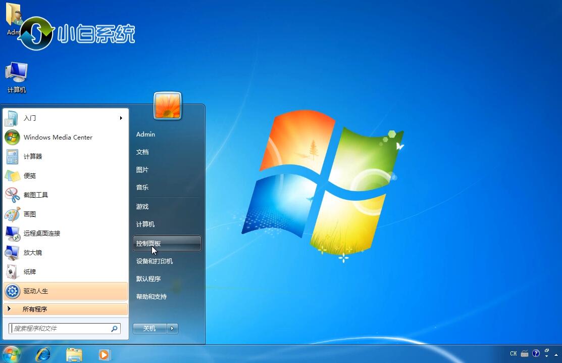 1、先打開(kāi)開(kāi)始菜單,點(diǎn)擊控制面板;