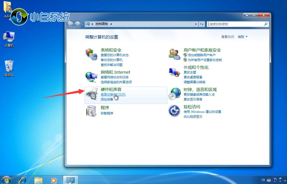 2、點(diǎn)擊打開(kāi)‘設(shè)備和打印機(jī)’,在打印機(jī)和傳真界面找到你的打印機(jī)。