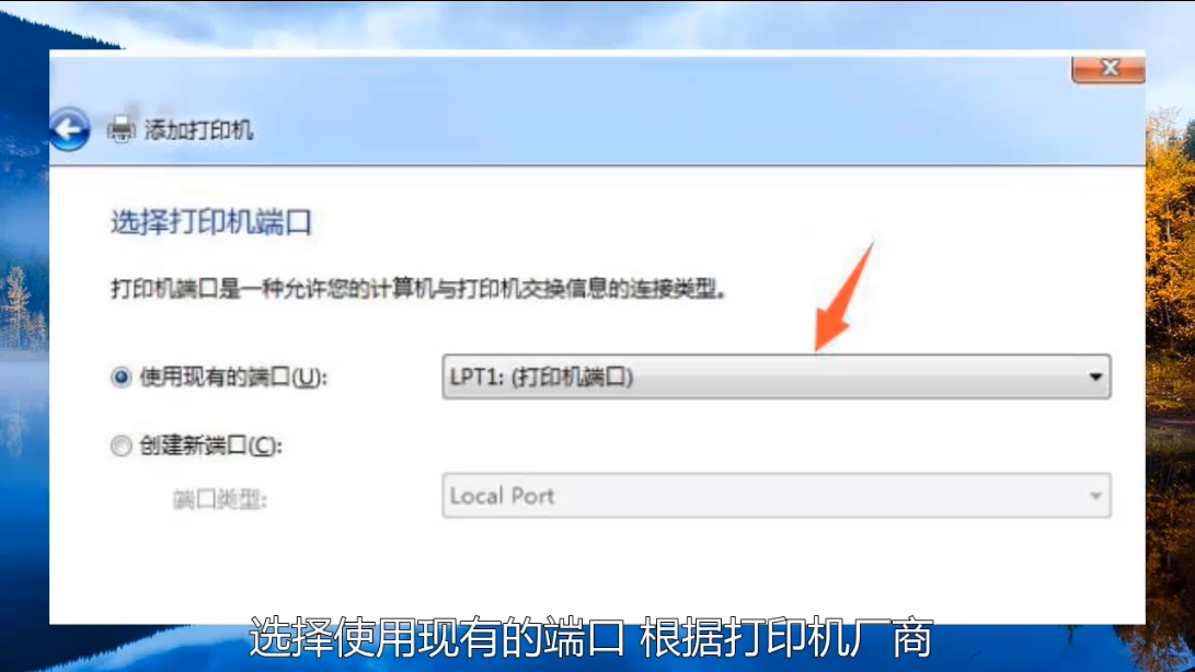 3、選擇添加本地打印機(jī),再選擇使用現(xiàn)有的端口;