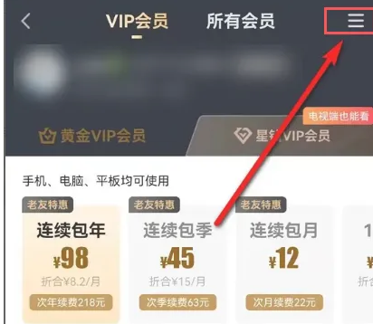 1.首先要在愛奇藝中我們找到我的,點擊“黃金VIP會員”