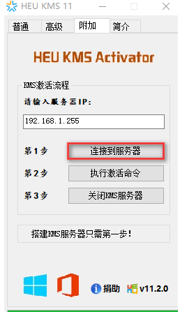 1、點(diǎn)擊運(yùn)行win8KMS激活工具,點(diǎn)擊連接到服務(wù)器進(jìn)入下一步;