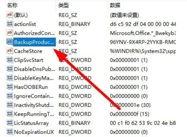 7、在左側(cè)的名稱下方,選擇“BackupProductkeyDefault”文件并點擊。