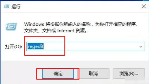 5、在彈出的界面中,輸入regedit,點擊確定。