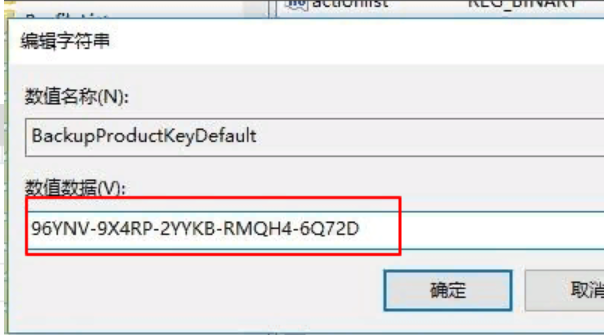 8、輸入第三步中復(fù)制的“產(chǎn)品ID”字符,點擊確定,這時候顯示出的“數(shù)值數(shù)據(jù)”下方數(shù)據(jù),也就是WIN10的激活密鑰。