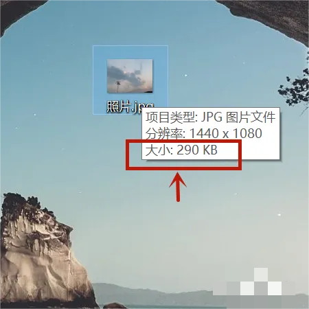 1. 將鼠標(biāo)放在照片文件上,可以看到大小為[290kb]。