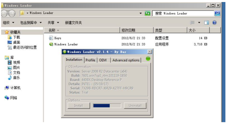 借助Windows Loader激活工具激活windows2008步驟: