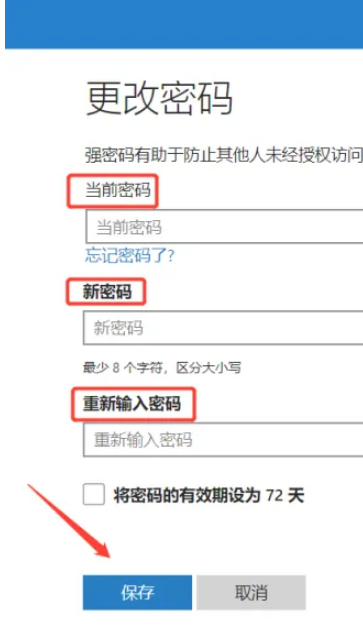 3.然后我們進(jìn)入密碼修改界面,先輸入當(dāng)前密碼,再輸入兩次要修改的密碼,點(diǎn)擊“保存”。之后,您可以使用新密碼登錄 Microsoft Mail。
