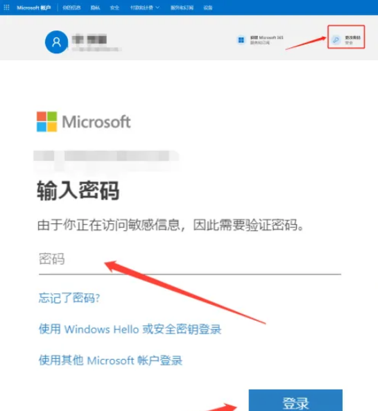 2、在微軟賬戶頁(yè)面點(diǎn)擊“更改密碼”,跳轉(zhuǎn)到微軟賬戶登錄,輸入密碼,點(diǎn)擊“登錄”。