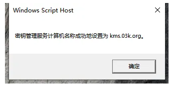 4.接著會(huì)彈出“密鑰管理服務(wù)計(jì)算機(jī)名稱(chēng)成功設(shè)置為kms.xspace.in”提示,點(diǎn)擊“確定”按鈕。