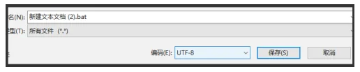 2.點(diǎn)擊文件選擇“另存為”,在彈出的界面中,將保存位置選擇在桌面,保存類(lèi)型改為所有文件,文件名改為.bat格式的文件,然后點(diǎn)擊“保存”按鈕。