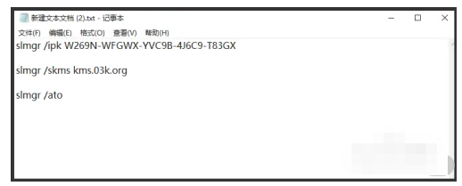 1.在桌面新建一個(gè)文本文檔,把以下代碼復(fù)制進(jìn)去,如圖所示: slmgr /ipk W269N-WFGWX-YVC9B-4J6C9-T83GX slmgr /skms kms.03k.org slmgr /ato。