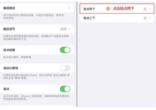 2、在【觸控】界面中一直往下找到【輕點背面】后點擊,然后選擇【輕點兩下】;
