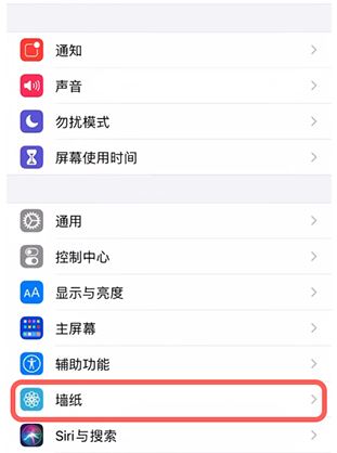 1、打開IPhone手機之后在桌面上點擊【設置】進入,點擊設置界面中的【墻紙】設置;