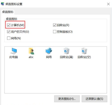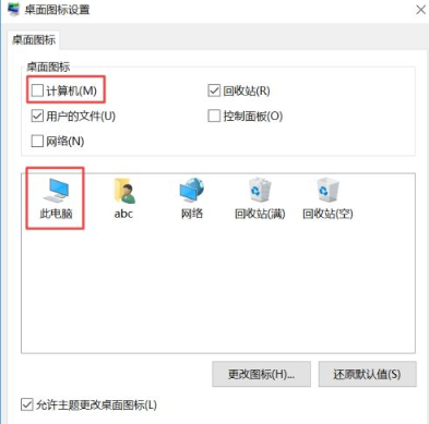 進(jìn)入桌面圖標(biāo)設(shè)置勾選計算機選項: