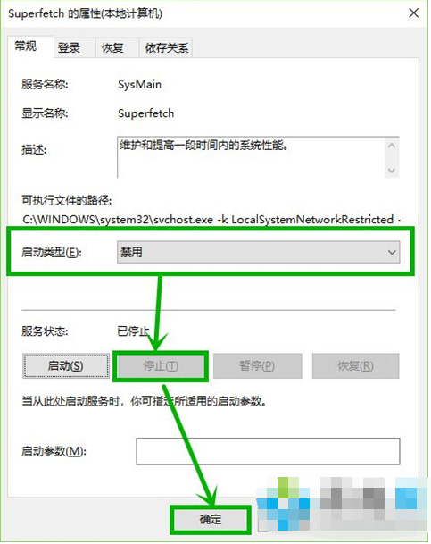 2、選擇superfetch屬性,將啟動類型修改為禁用,點擊停止,點擊確定退出即可。